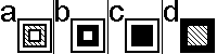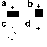 第26-29 題:在左邊的四個圖形中缺少兩個圖形,請從右邊的一組圖形 (a b c d e)中選出兩個填入左邊以使左邊的圖形從邏輯角度上能成雙配對
